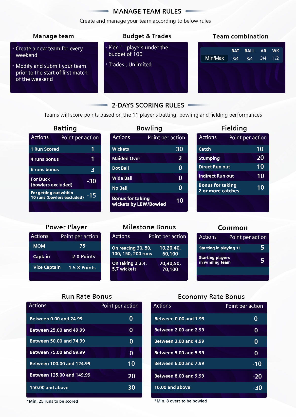 Traditional format of fantasy cricket. Create your team within a specific budget.